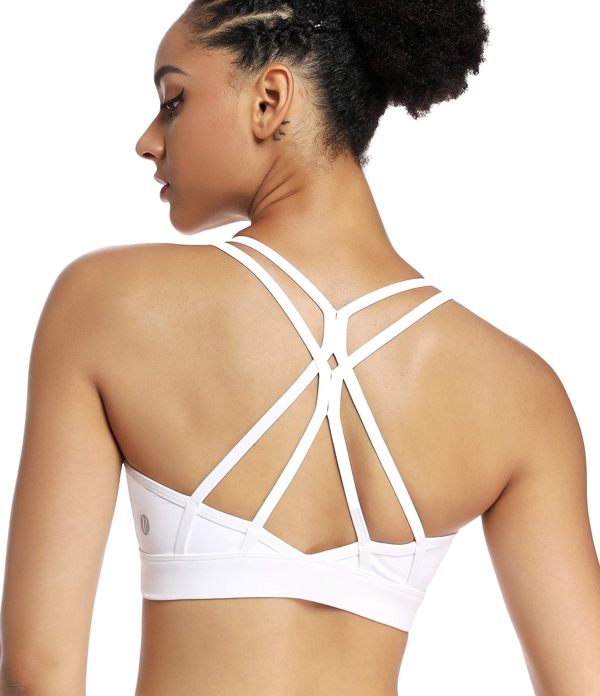 - LIGHT SUPPORT: Strappy meets sporty in a supersoft scoop with light, removable padding and crossback styling for light support. Crisscross back straps let you twist with ease, Sexy Crossback design offers a extra back support, fashionable and stylish, also perfect with open tops, Stretch Fit Sports Yoga Gym Bra.